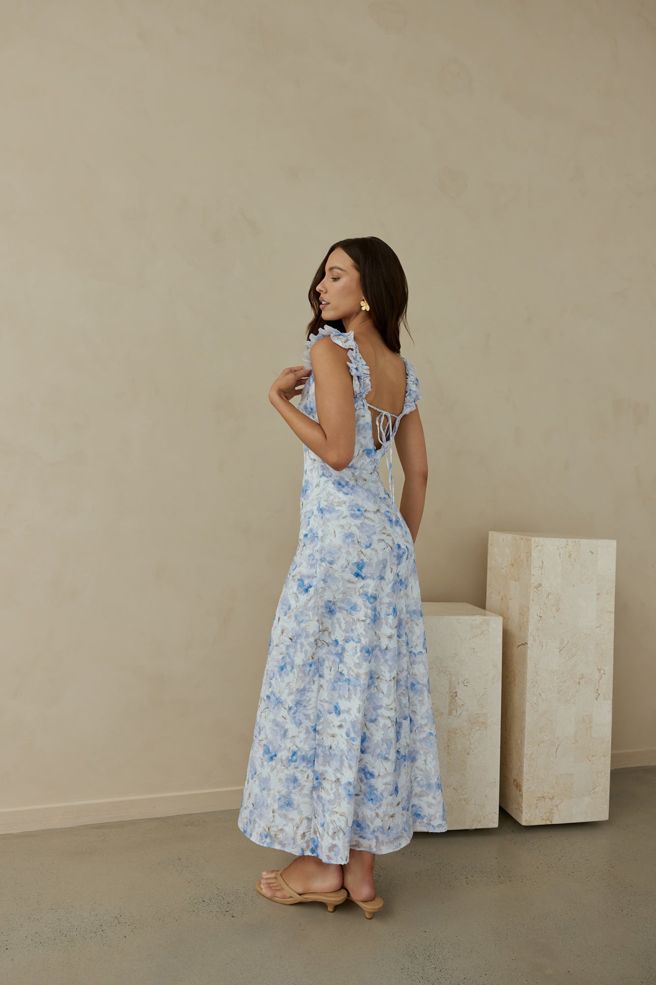 Rose Petal Reverie Midi Dress Blue